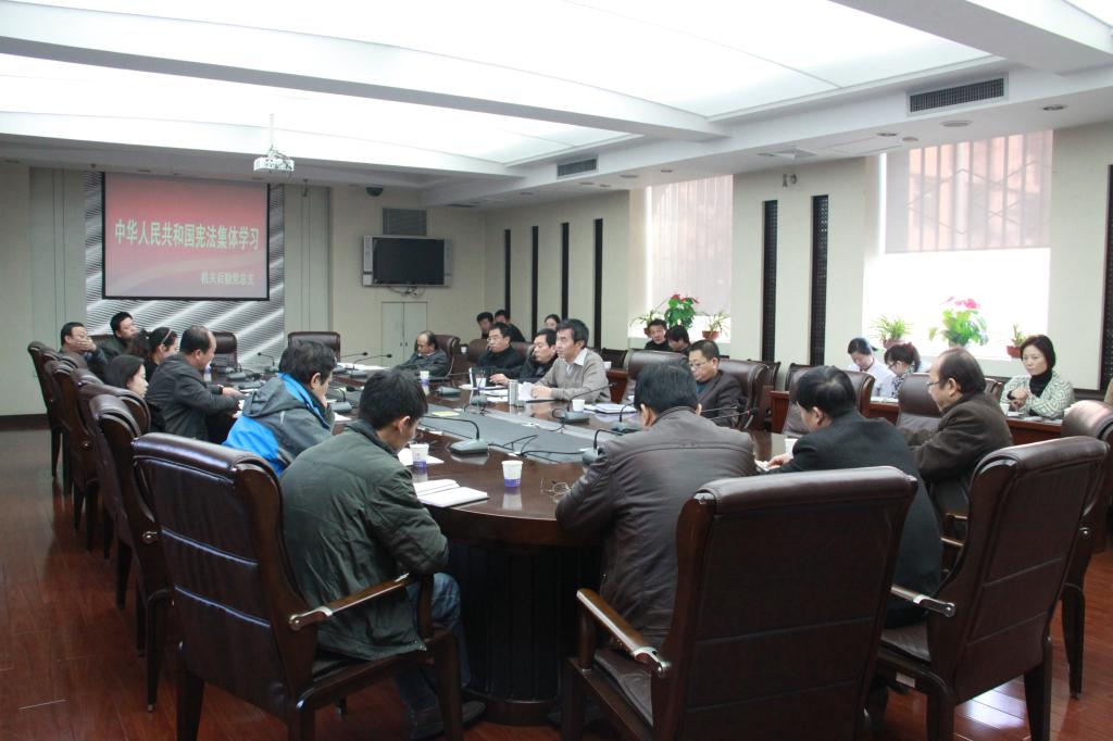 会前,党总支已将《宪法》学习材料发到党员干部手中,并在校园网上转载《宪法》和有关法制宣传的文章。会上,韩臻、张燊、江岚三位同志带领全体党员领学了《中华人民共和国宪法》全文,与会党员聚精会神,认真记录。