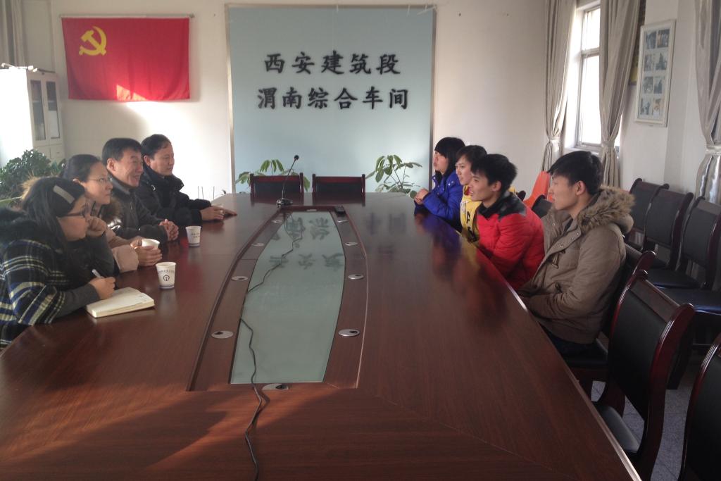 近日,临潼校区主任熊奇、党总支书记张国邦、副主任王秀丽、吴西蒙分别赴延安工务段蒲城车间、西安南站和西安建筑段渭南综合车间,看望2014届顶岗实习学生。