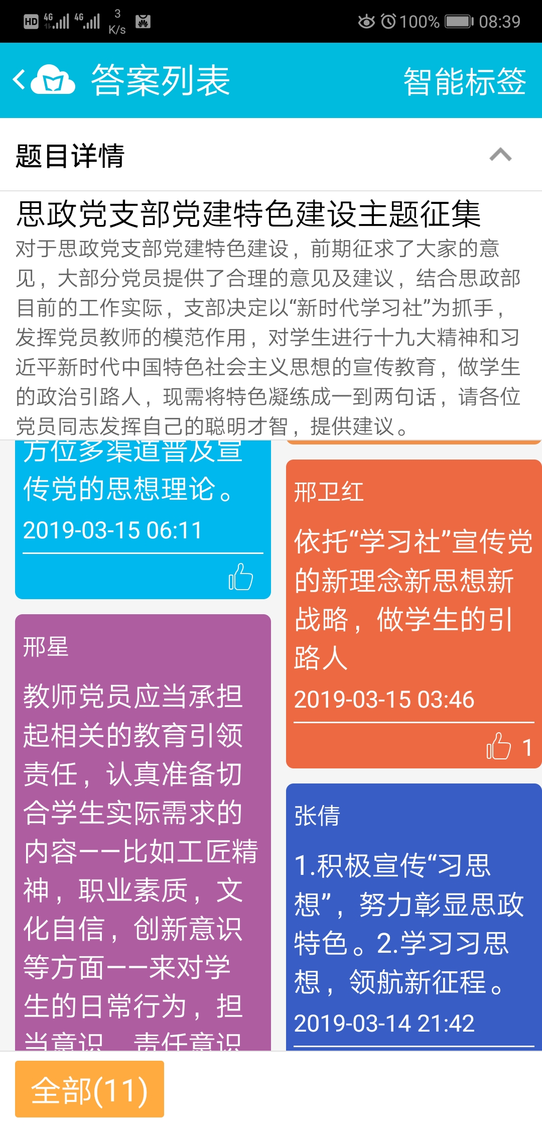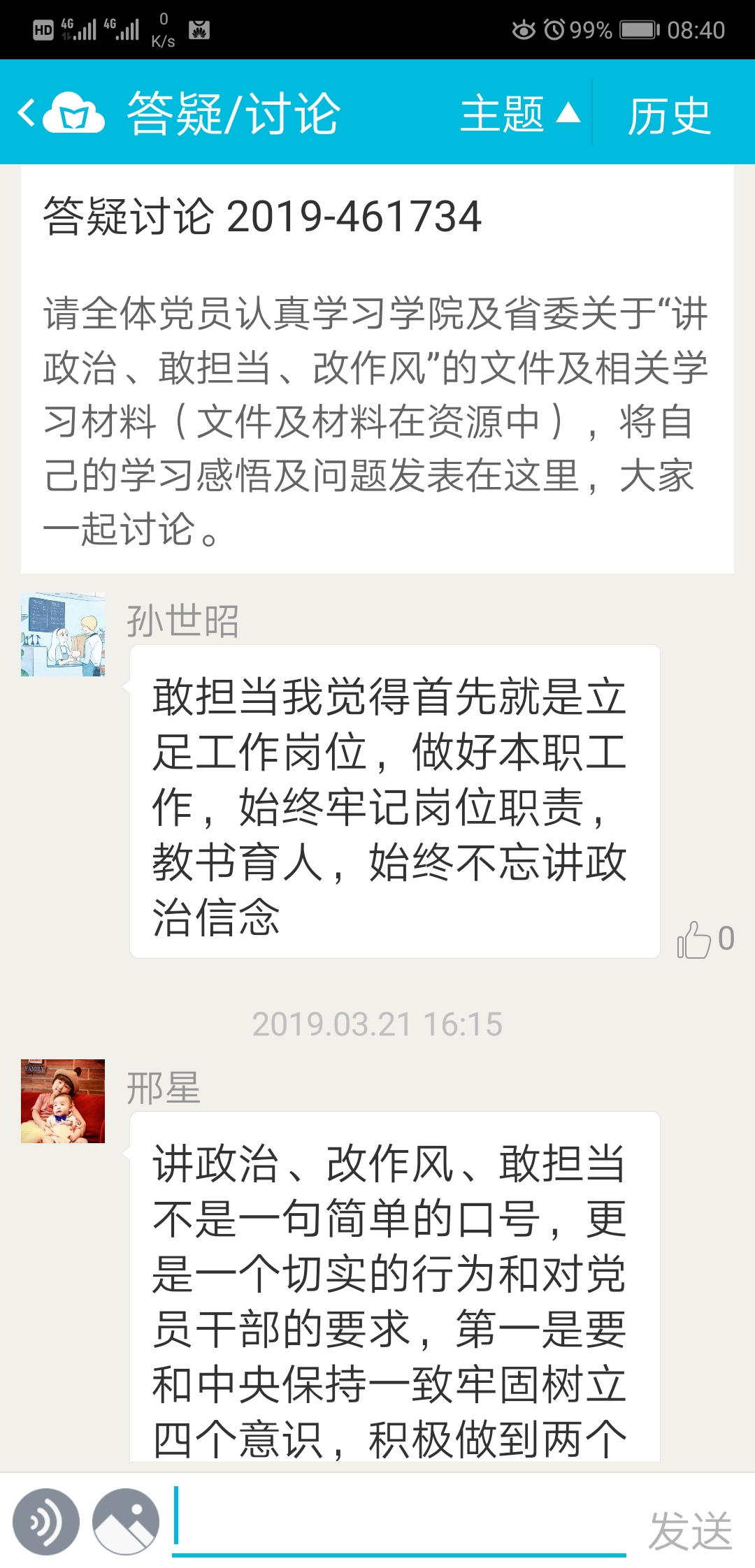 本次主题党日活动最大的亮点就是充分利用“蓝墨云班课”APP学习软件。本学期开始,思政党支部为了创新党支部学习形式,利用“蓝墨云班课”APP,建立了思政党支部班课,日常学习资料随时上传到班课中,并在班课中发起讨论,广大党员可以利用碎片化时间进行学习,参加讨论,获取经验值。这种学习方式改变了传统的“线下学习”,转为“线上线下学习”相结合,创新了党员的学习模式,而且通过经验值的奖励积累,也充分调动了全体党员学习的积极性和主动性,让党员学习更加便捷高效,更进一步促进学习型