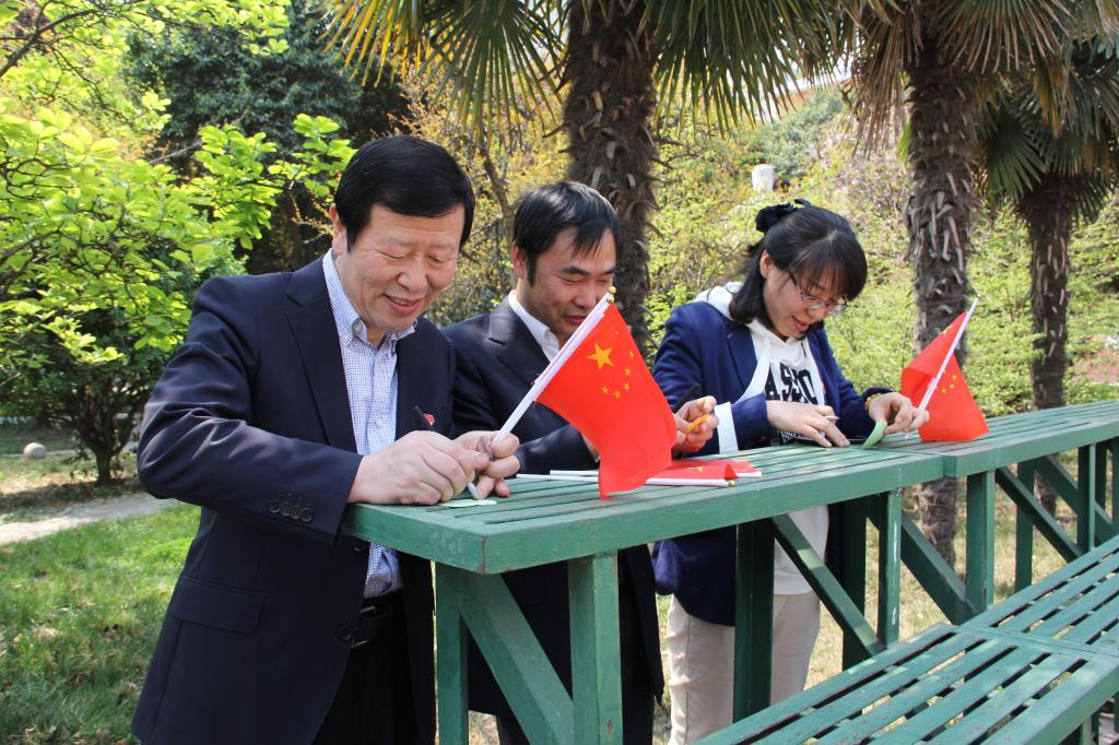 “我和我的祖国,一刻也不能分割,无论我走到哪里,都流出一首赞歌……”,4月4日中午,《我和我的祖国》这首优美动人的旋律在自强校区詹天佑广场上空飘扬,这是必赢bwin线路检测中心交通运输党总支组织党员教师开展的特色主题党日的开场活动。此次主题党日活动分合唱、总支书记提寄语、党员代表亮决心、全体党员签名承诺、重温入党誓词、合影留念六个环节,旨在贯彻落实党的十九大“不忘初心、牢记使命”的要求,引导党员强化党性观念,增强“四个意识”、坚定“四个自信”、做到“两个维护”,在新时代更好地发挥高校教师党员的先锋模范作用,踏踏实实做大国工匠的筑梦人。