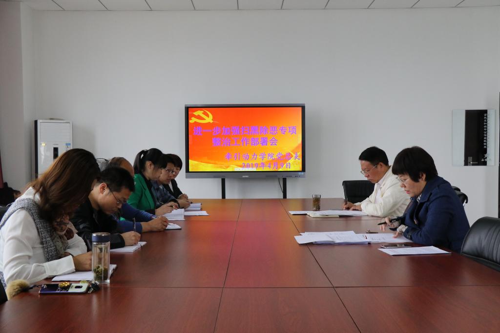为进一步贯彻落实扫黑除恶专项斗争工作,进一步强化党组织建设。4月9日上午,牵引动力学院党总支在701会议室召开了进一步加强扫黑除恶专项整治工作部署会。牵引动力学院党总支书记和晋秦,副书记、院长李益民,各支部书记及组织委员参加了本次部署会,会议由和晋秦主持。