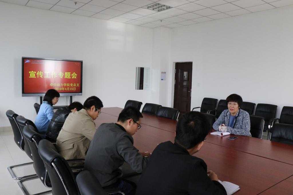 为进一步加强和改进牵引动力学院宣传思想工作,凝聚共识,4月15日,牵引动力学院党总支在701会议室召开了宣传工作专题会,牵引动力学院党总支书记和晋秦、各年级辅导员、学院网站宣传员、微信公众号管理员等相关人员参加了会议。