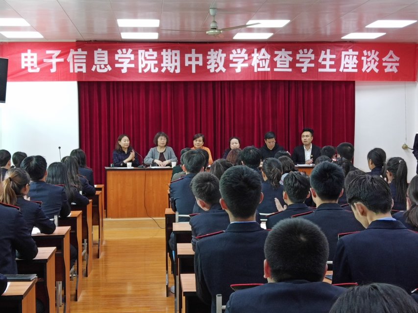 为深入全面了解本学期的教学情况,倾听广大学生的心声,更好地组织教学,电子信息学院10个专业24个班级的学生代表于5月8日下午在必赢官网自强校区教学楼407召开期中教学检查学生座谈会。电子信息学院院长孙津平、党总支书记张伟敏、教务处副处长督导室主任史艺红、督导室吴麦仙教授以及学工办、教研室主任和72名来自各班的学生代表参加了座谈会,会议由电子信息学院办公室主任马荣主持。