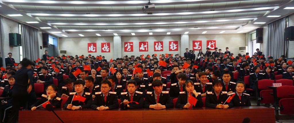 大会开始前同学们挥舞手中的国旗和团旗共同唱响《没有共产党就没有新中国》,《我和我的祖国》。