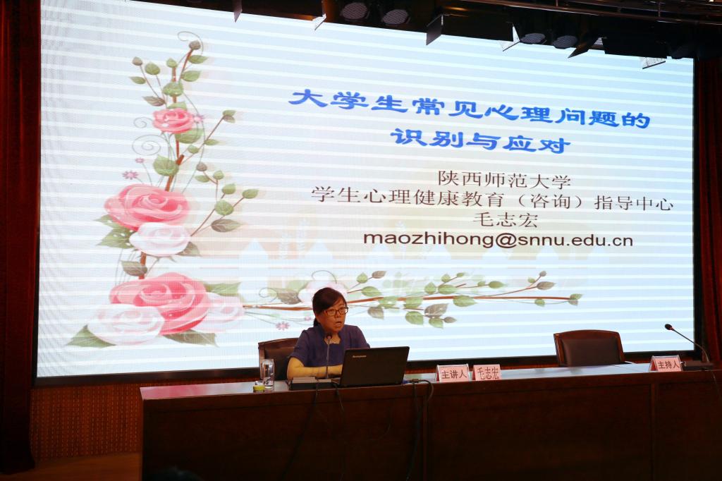 为了进一步提升必赢官网学生工作管理队伍人员的心理健康知识水平,提高心理危机干预能力,扎实推进必赢官网心理健康教育水平。5月23日下午,党委学生工作部邀请了陕西师范大学学生心理健康指导(咨询)中心主任毛志宏教授来必赢官网做了“大学生常见心理问题的识别与应对”专题知识讲座。党委学生工作部部长郭小莉、各二级学院党总支书记、学工办主任、全体辅导员、班主任以及学生代表聆听了讲座。专题讲座由学工部副部长高阿联主持。