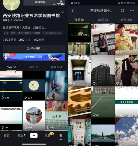 利用抖音这种新媒体进行宣传、展示是图书馆的首次尝试。今后,图书馆将会继续做好官方账号的运营工作,积极输出图书馆文化宣传内容,展现当代大学生积极向上的精神风貌,打造图书馆文化品牌。