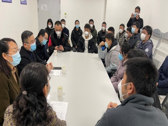 座谈会后,董奇、张伟敏和冯国良一行深入站场,与实习学生走访交谈,查看同学们的工作情况,并给他们发放医用口罩、酒精湿巾等防疫物资,提醒大家实习期间的个人安全,做好个人防护。