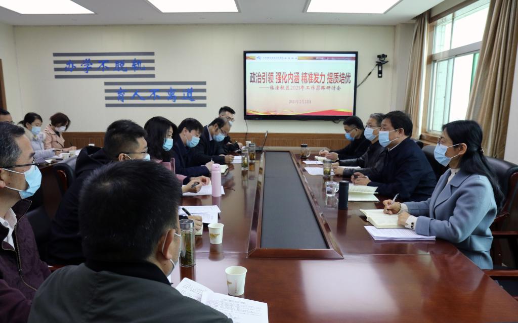 2月22日,临潼校区紧密围绕学院“双高”创建和内涵建设工作,结合学院提质培优行动计划、疫情防控和学院领导相关讲话精神,组织校区全体副科级以上干部召开了工作思路研讨会,全面谋划2021年工作。