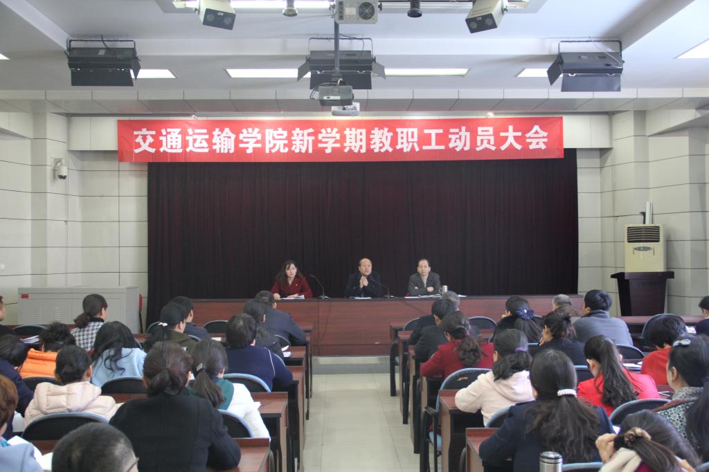 开学伊始,交通运输学院紧锣密鼓筹备新学期教学、学生管理、党务、行政等各项工作,并于3月1日下午,在自强校区大电教召开全体教职工新学期动员大会,总结之前工作中取得的成绩和存在的不足,安排部署新学期工作要点。会议由学院办公室主任薛青娜主持。