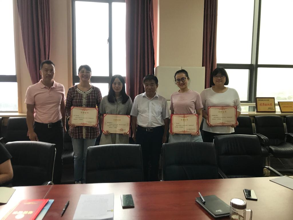 优秀班主任代表冯旎、张春丽两位老师和大家分享了自己在带班过程中的成功经验和做法。任建国为获2018-2019学年优秀班主任的冯旎、张春丽、刘明晓、卢帆四位老师颁发了证书。