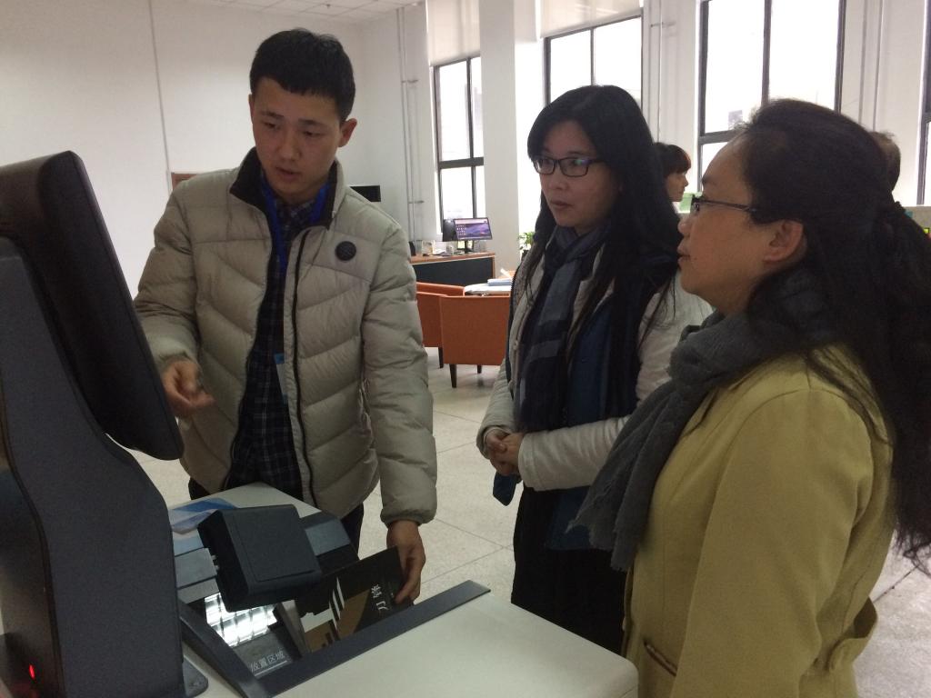 袁素瑛向来宾介绍了必赢官网图书馆的整体布局及馆藏资源建设等情况,并就自助借还机、自助文印等先进设备的操作方法和功能进行了现场演示。随后袁素瑛陪同来宾参观了馆舍,来宾对必赢官网图书馆电子阅览采用的云阅览模式非常感兴趣,给予了高度评价,并对向学生免费开放的人性化举措表示充分肯定。
