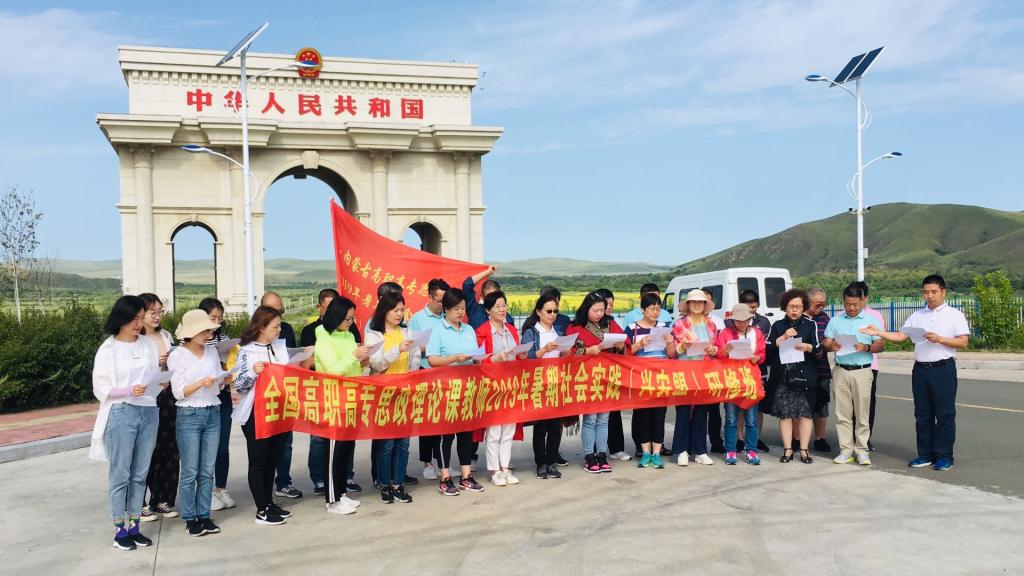 切身体验到了兴安盟人民近年来开展生态文明建设的实践成果。除此之外,在此次研修的过程中,教师们也感受与收获了内蒙古自治区兴安盟的蓝色多元少数民族文化,源远流长的草原文化、可歌可泣的革命历史以及日新月异的城市面貌,让教师们为民族大团结取得的成绩感到欣喜。最后,在中蒙边境阿尔山口岸国门前,开展为庆祝中华人民共和国成立70周年诗朗诵、献歌和宣誓等教学活动,激发了全体教师的爱国热情和“不忘初心、牢记使命”的教育育人责任感与使命感。