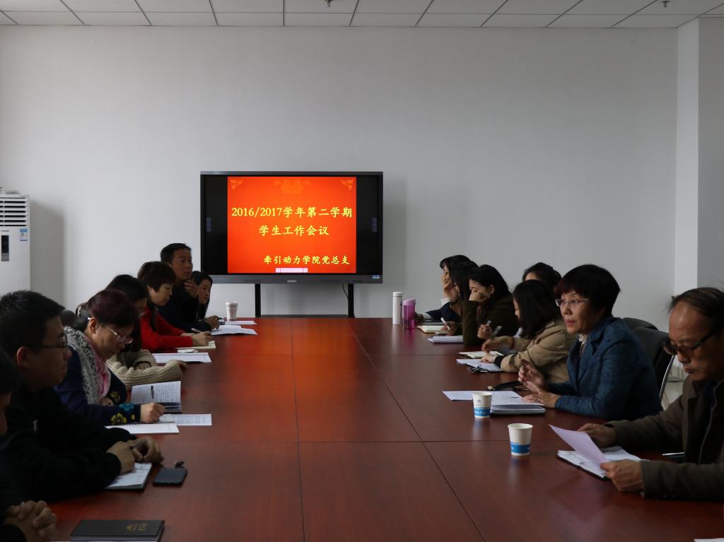 为全面落实学院党委《关于在“两学一做”学习教育中开展“大学习、大教育、大排查,察民情、解民忧、助民富”主题实践活动的安排意见》的要求,深入了解在校学生的思想、学习及生活状况,3月29日,牵引动力学院党总支在牵引楼701会议室召开学生工作专题会议,全体辅导员班主任参加了会议,党总支书记和晋秦主持会议并讲话。