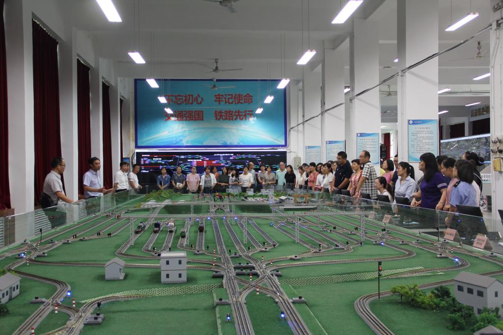 教职工大会后,全体教师参观了教学楼八楼的铁道交通运营管理专业校企合作生产性实训基地。