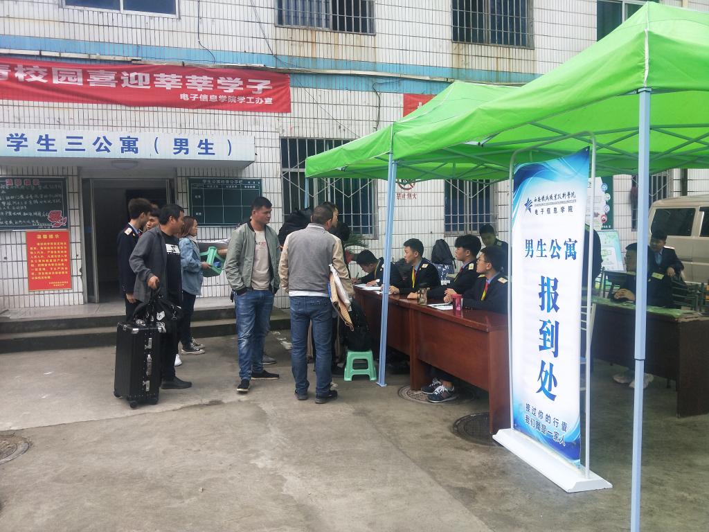 为确保迎新工作高效、有序地进行,学院电子信息学院提前对新生报到工作进行了详细的安排和周密的部署。9月18日早上7点,电子信息学院辅导员、班主任和迎新志愿者在各指定地点已全部到位,满怀期待,静候新同学。门口咨询处是迎新第一站,老师和志愿者们为新生及家长提供最优质的服务,用微笑迎接每一位新生,他们带领新生办理入学手续,以积极的工作态度,认真细致地做好各项工作,为新同学营造了热情、有序的迎新环境。