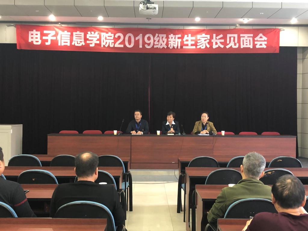 之后,电子信息学院还召开了2019级新生家长见面会,就家长关心的学生在校期间的生活、学习、专业设置、学生管理、就业等情况进行了讲述和说明。
