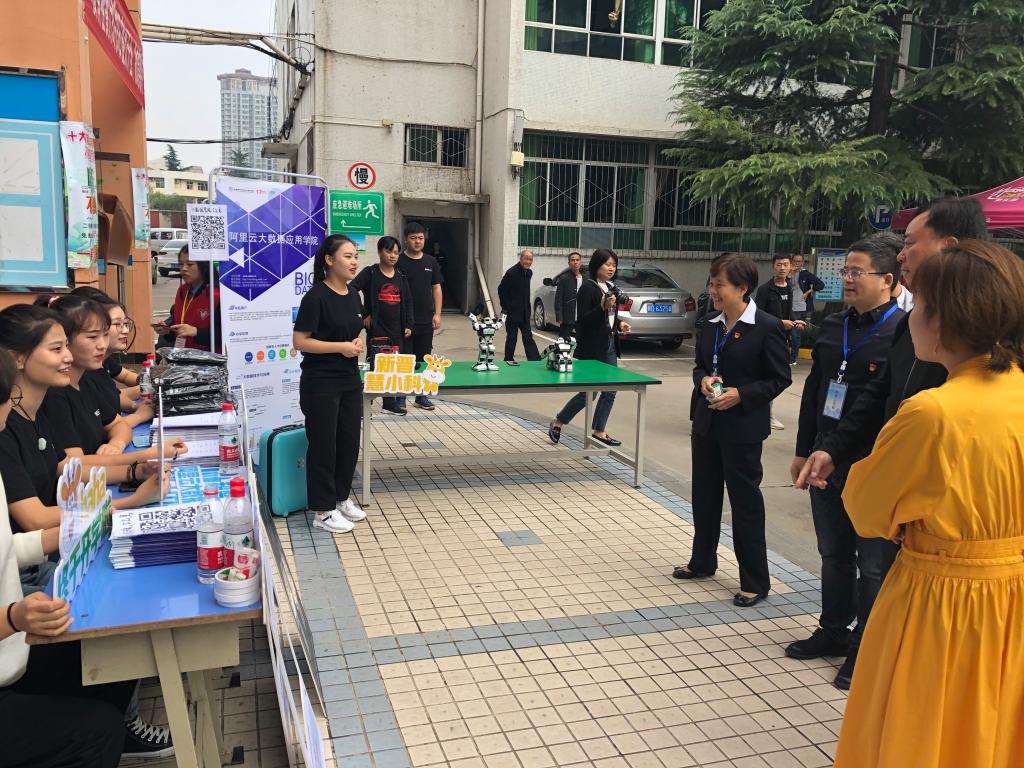 新生报到期间,学院领导在电子信息学院院长孙津平,党总支书记张伟敏,学工办副主任薛明陪同下检查迎新现场的咨询处、发号处、审查处、注册报到处、绿色通道办理处,询问报到情况,与学生、家长进行亲切交谈,慰问了迎新一线的工作人员,对迎新工作有条不紊的进行表示满意,给予了充分肯定。