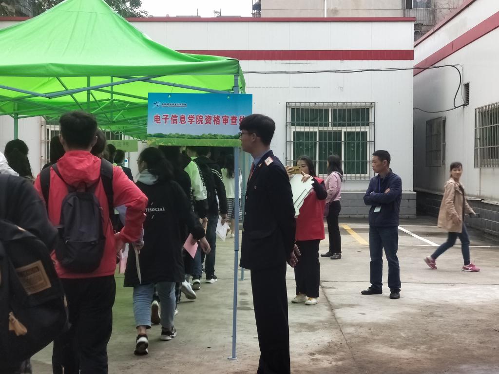 为新生顺利完成报到注册,沿途还放置了报到指示牌,每个环节均有志愿者热情引导,悉心服务,帮助新生能够准确到资格审查处、注册报到处、收费处、绿色通道及物品发放处。电子信息学院还制作了图文并茂的宣传展板,专业特色介绍、优秀教师展示等。