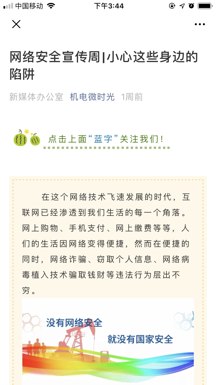 本次系列活动机电工程学院利用各类宣传阵地,扩大了宣传覆盖面与参与度,切实提高了学生的网络安全意识,对网络安全的普及及深入起到积极作用。