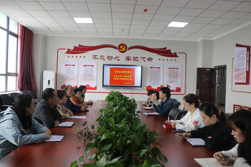 10月14日上午,学生支部召开“沉底听声”查找问题整改会,就“沉底听声”座谈会上提出的28条意见,逐一进行剖析,集思广议制定出可行性的解决方案和整改措施,力求在“边学边查边改”上见实效,确保全院2700多名学生的安全稳定。