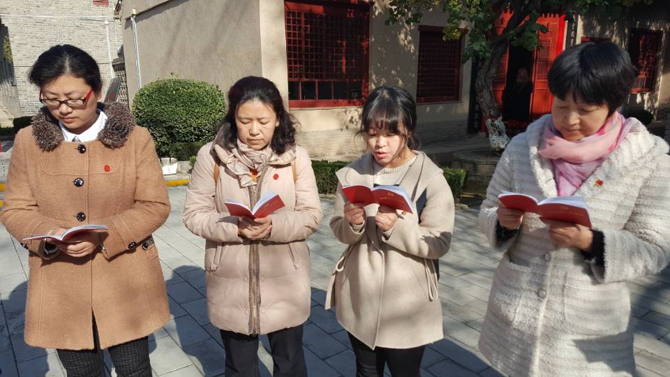 最后,全体党员在渭华起义司令部院内诵读新修订的党章,共有8名同志依次诵读,聆听的党员手捧党章一起默读。活动中,机电工程学院党总支书记张雅兰要求大家认真学习贯彻落实十九大精神,根据学院党委要求抄写十九大报告和新党章,并学用结合,把十九大精神落实到实际工作中去。