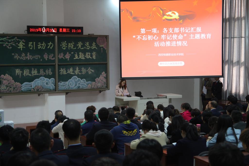 会上,各党支部书记就开展“不忘初心 牢记使命”主题教育的基本情况,特别是落实“三会一课”制度、学习教育、调查研究、检视问题、整改落实等方面工作的进展和成效进行了汇报。尤其是学生党支部在整改落实方面的具体举措,以及教学二支部提出的“为学院学生树榜样、为学校发展倾全力”,“动拖结合地铁行、党群结合鱼水情”党建目标,反映出全体党员的心声,赢得了现场师生热烈的掌声。