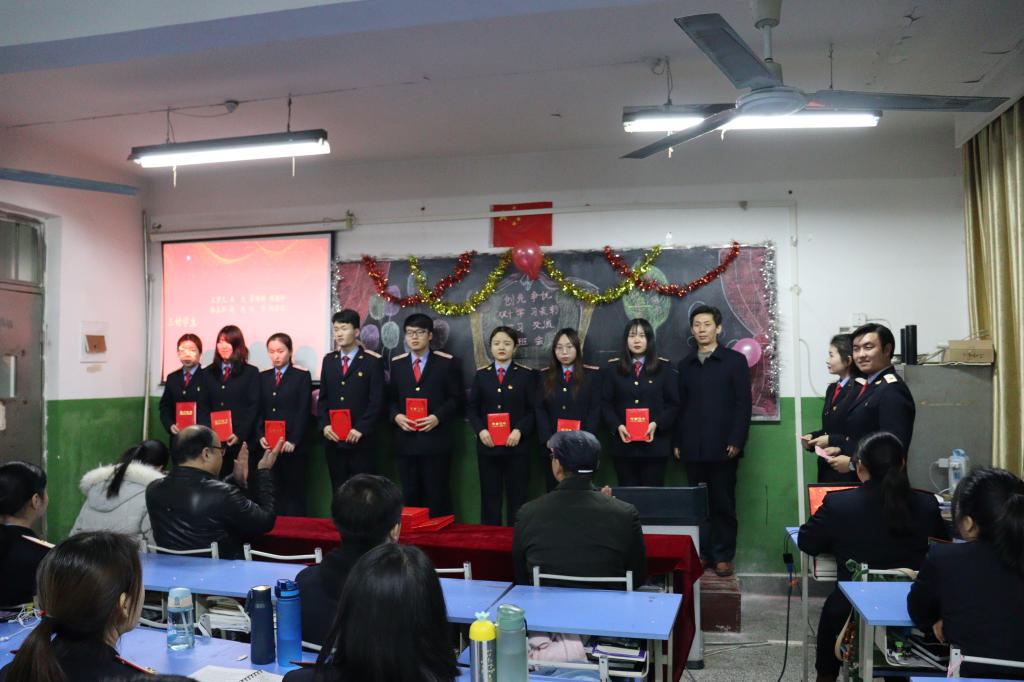 在接到学院通知后,各个班级早早开始筹备大会。22日晚,主题鲜明的黑板报配上多媒体音效,营造出浓厚的表彰氛围。晚7点,各班表彰大会准时开始,由主持人宣读本班本学期在创先争优暨双十学习竞赛中获奖班级和学生名单,由仵崇智为获奖班级颁发优秀班集体奖牌,由孟永辉及各年级组长、辅导员、班主任老师为获奖同学颁发个人奖。