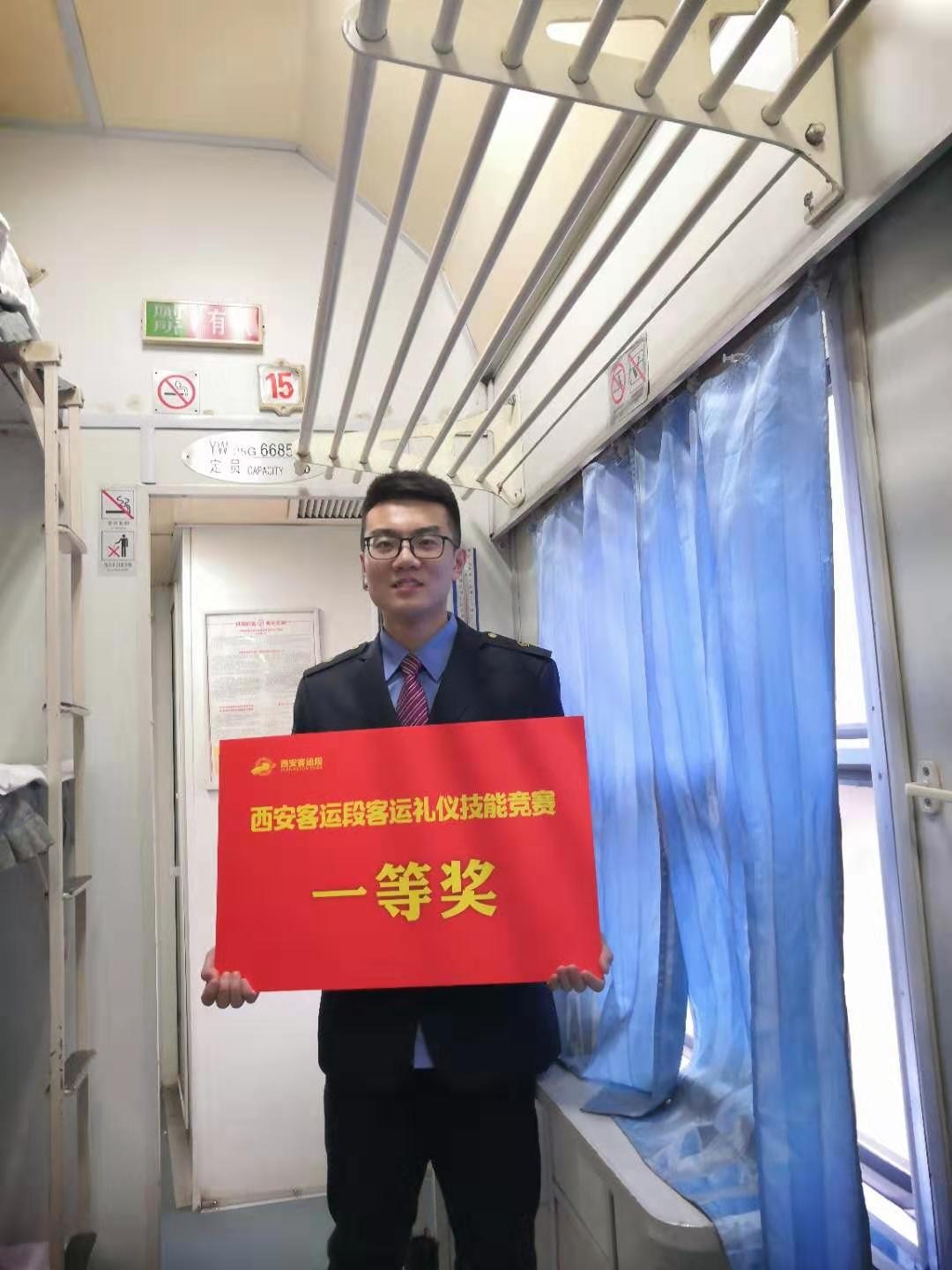 在西安客运段12月中旬举办的客运礼仪技能竞赛汇演中,必赢官网动车组驾驶1702班的罗猛同学带领他们的团队脱颖而出,荣获一等奖。