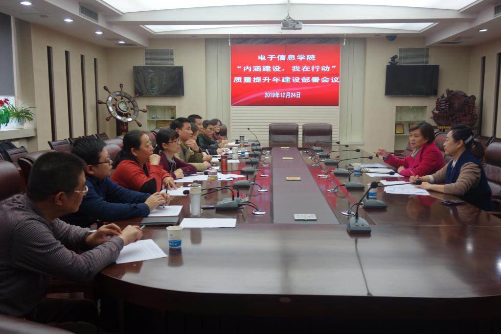 12月24日,电子信息学院在自强校区召开“内涵建设,我在行动”质量提升年建设工作部署会。电子信息学院院长孙津平、各专业带头人和全体教研室主任参加会议。