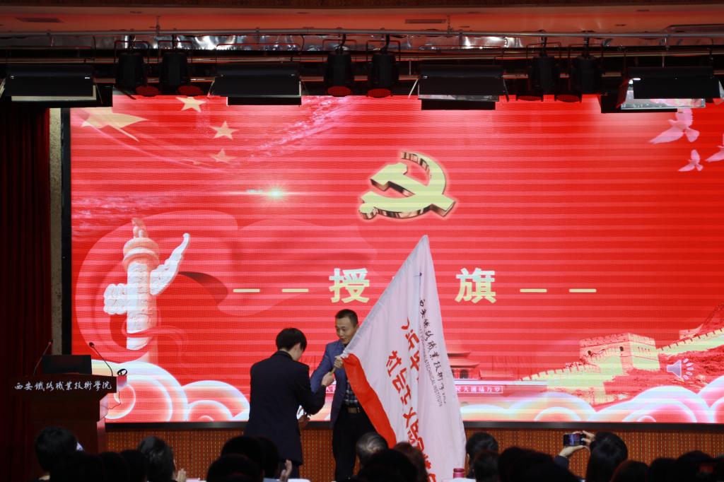 随后,思政部办公室副主任赵建英宣读“新时代学习社”章程,对学习社的成立宗旨、组织机构、学员制度等进行了详细介绍,并强调作为作为新时代铁路事业的建设者和接班人,要有新气象、新作为。由社长张尧同学带领学习社全体学员宣誓,望新老学员能深入了解学习社成立的初衷,不忘初心,砥砺前行。最后,由张治平向2019级学员代表尚超授社旗,旗帜是信念的载体,是老社员对新社员的传承,更是代表着对新一届学员的期望和祝福。