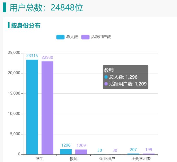 铁道交通运营管理专业国家级教学资源库的用户中,活跃教师数1296人,活跃学生数22930人。