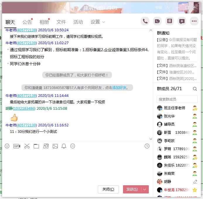 学管干部实时跟进班级,检查学生出勤情况。校区学工办主任、辅导员、班主任通过深入班级群,严格把关学生出勤情况,确保学生上课出勤率,对无故不上线学习的学生做到动态跟踪,掌握原因,并对极个别学生及时进行心理疏导和教育,全力保障学生在规定时间能够通过手机、电脑等网络工具主动、认真、高效的学习。开课以来,校区线上学习签到率达99%以上。