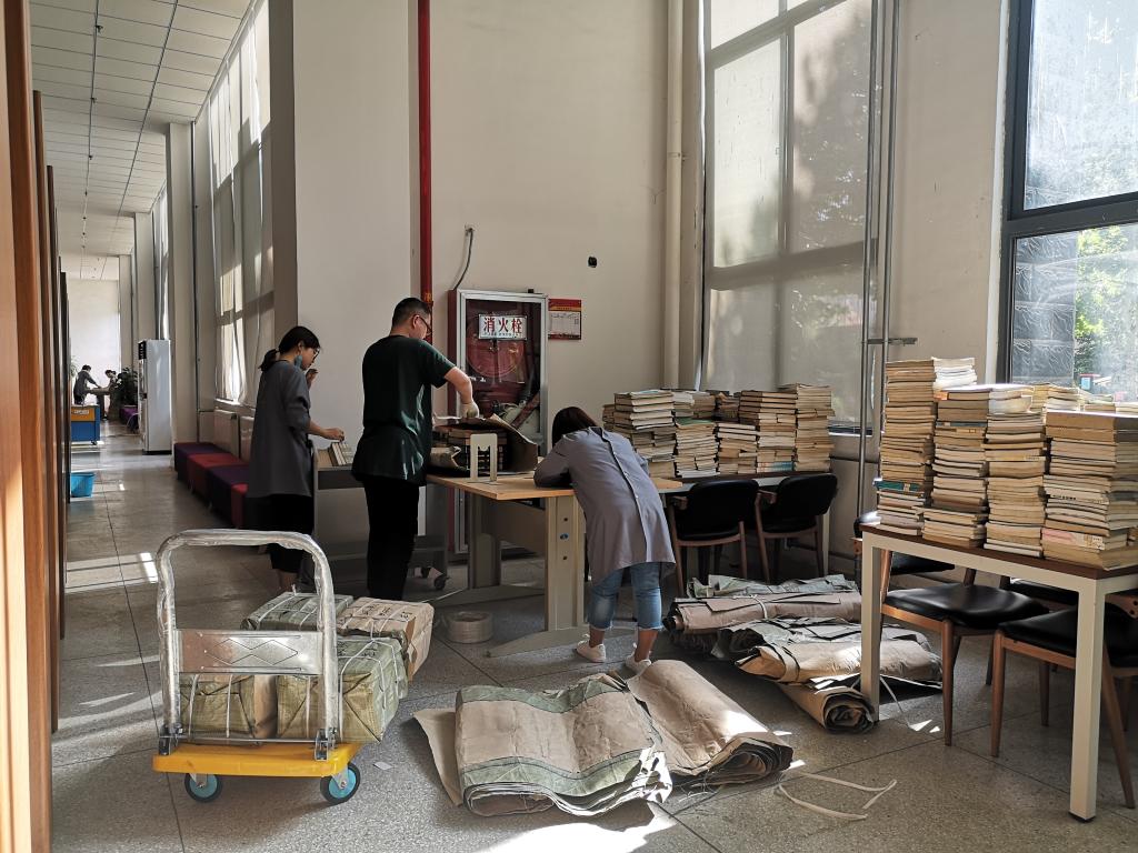 随着图书馆纸质图书购买量进一步加大,一楼书库已经处于饱和状态,没有足够空间上架新书,急需开展图书下架、打包、倒库、顺架及倒架工作。图书馆针对这一问题,同时充分利用疫情期间学生未开学这一特殊情况,因地制宜、统一部署,经过一个多月艰苦奋战,终于如期完成此项任务。