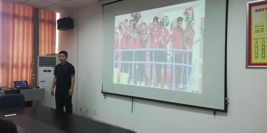 接到比武通知后,基础部提前宣传安排部署,各教研室经过挑选,各推荐一名教师参加比赛。四个参赛项目虽然不属于同一学科,但却将“思政进课堂”的理念融入进去,从敦煌壁画“飞天舞”到航天梦的实现,从高等数学极限概念到“砥砺前行”,从英语“Facing the global climate”到人与自然的和谐,从排球的接发球练习到“女排精神”,每位老师都展示出了课程思政的特点。