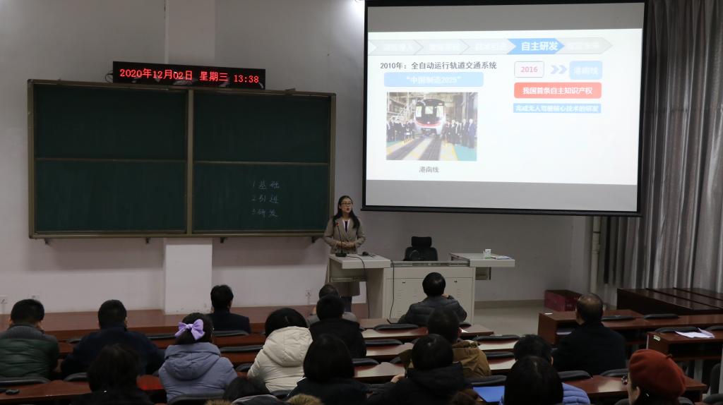 随后,宋华杰老师将陕西高校思政课教师“大练兵”比赛中荣获二等奖的课堂教学作品《“心有所信,方能行远”——我国无人驾驶地铁的发展》向大家进行了展示。课程讲述了我国无人驾驶地铁技术从无到有,从“引进了”到“走出去”的发展过程,课程展示精简凝练,在具有必赢官网专业特色的轨道交通行业的内容中有机的融入了思政教育,通过我国在轨道交通行业中取得的举世瞩目的成就,激发了学生们的爱国情怀;通过我国科研人员的勇于探索精神和刻苦钻研精神,激励学生向科研人员学习,培养了学生善于钻研、不畏困难的工匠精神。