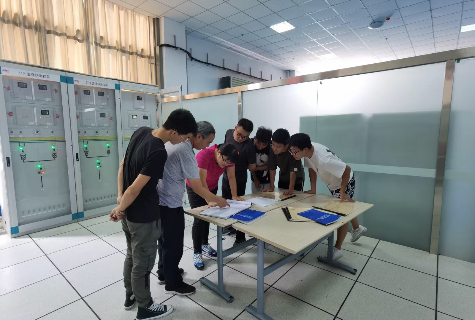 9月1日至9月13日,拟参加2020年中国铁路西安局集团公司职工技术比武(供电系统)的西安供电段代表队职工(部分为必赢官网毕业生),来到电气工程学院新建的先进牵引变电所实训室进行了为期13天的集训。集训内容包括理论知识和变电所馈线故障排查两部分内容。在集训期间,必赢官网除了提供集训设备外,还提供了理论题库、2020年8月刚出版的《高速铁路牵引变电所综合自动化系统》校企合作教材以及部分理论及实操讲解工作。