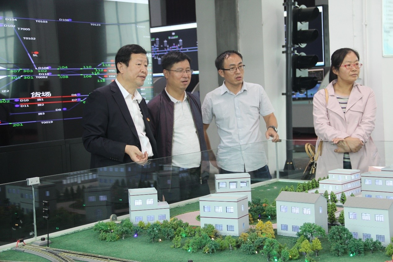 座谈会后,全国铁道运输专指委副主任韩买良教授陪同李朝阳一行参观了学院高速铁路调度指挥实训中心、城市轨道交通实训中心及物流管理实训室。