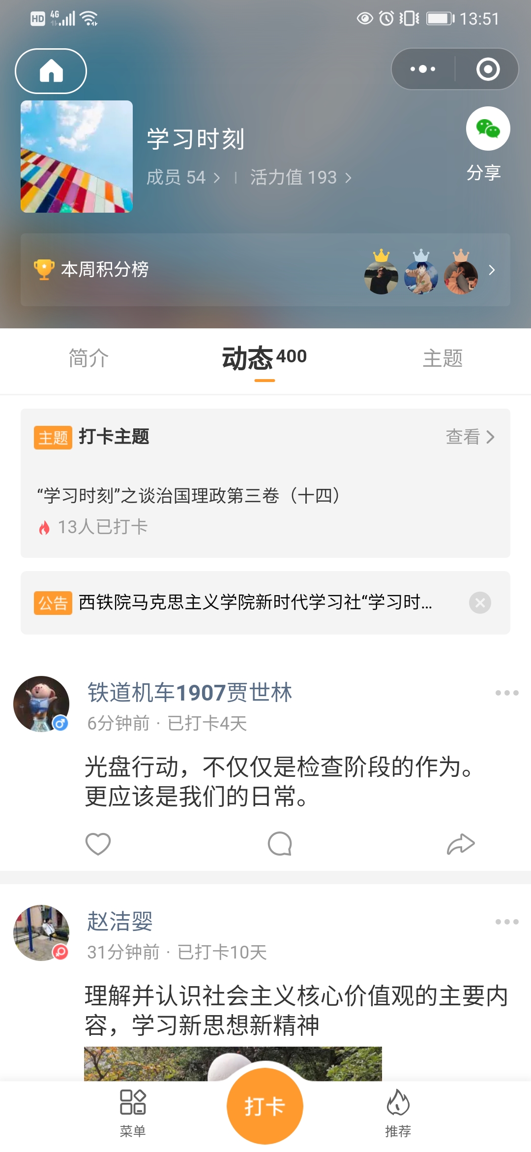 新学期伊始,必赢官网“新时代学习社”学员间经常能听到这样的对话。这是马克思主义学院组织的“新时代学习社”学员利用微信小程序,开展“学习时刻”每日学习打卡活动的场景。