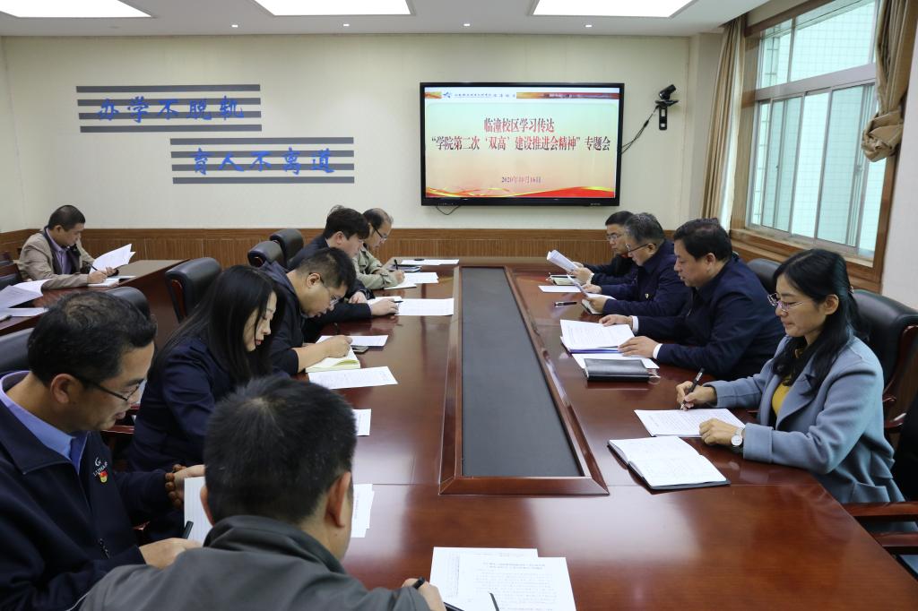 为深入贯彻落实学院第二次“双高”建设推进会精神,落实落细“双高”建设目标任务和指标要求。10月16日上午,临潼校区组织副科级以上干部及教研室主任召开专题会传达落实“学院第二次‘双高’建设推进会”精神。会议由校区主任熊奇主持。