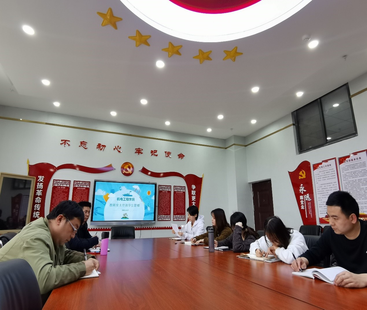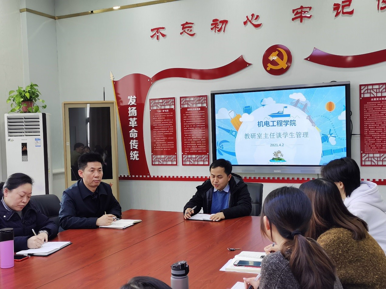 4月2日,机电工程学院开展教研室主任谈学生管理交流活动,邀请机械教研室主任邹俊俊从教师角度对学生管理工作进行了经验分享,学院党总支书记仵崇智,学工办全体辅导员、班主任参加了本次活动。