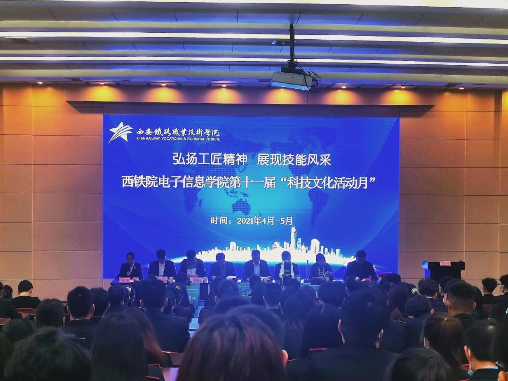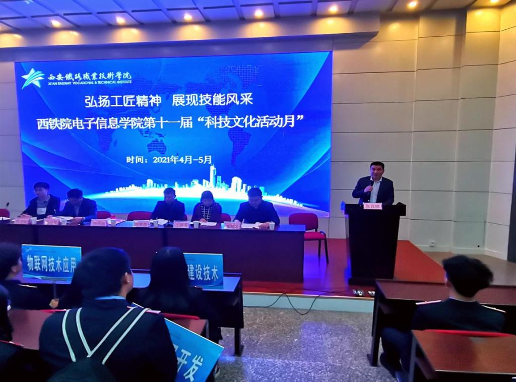 4月21日下午,以“弘扬工匠精神,展现技能风采”为主题的电子信息学院第“十一届科技文化活动月”开幕式在自强校区举行,电子信息学院副院长冯国良、学工办副主任薛明、办公室副主任柴葳葳以及教师、学生代表出席开幕式。陕西联泰电子科技有限公司总经理、高级工程师弓家杰,慧科教育集团高级讲师、阿里云认证讲师、慧科集团资深售前顾问刘卫坚,陕西聚才为源信息科技有限公司销售总监陈建斌等企业嘉宾受邀莅临现场。开幕式由办公室主任马荣主持。