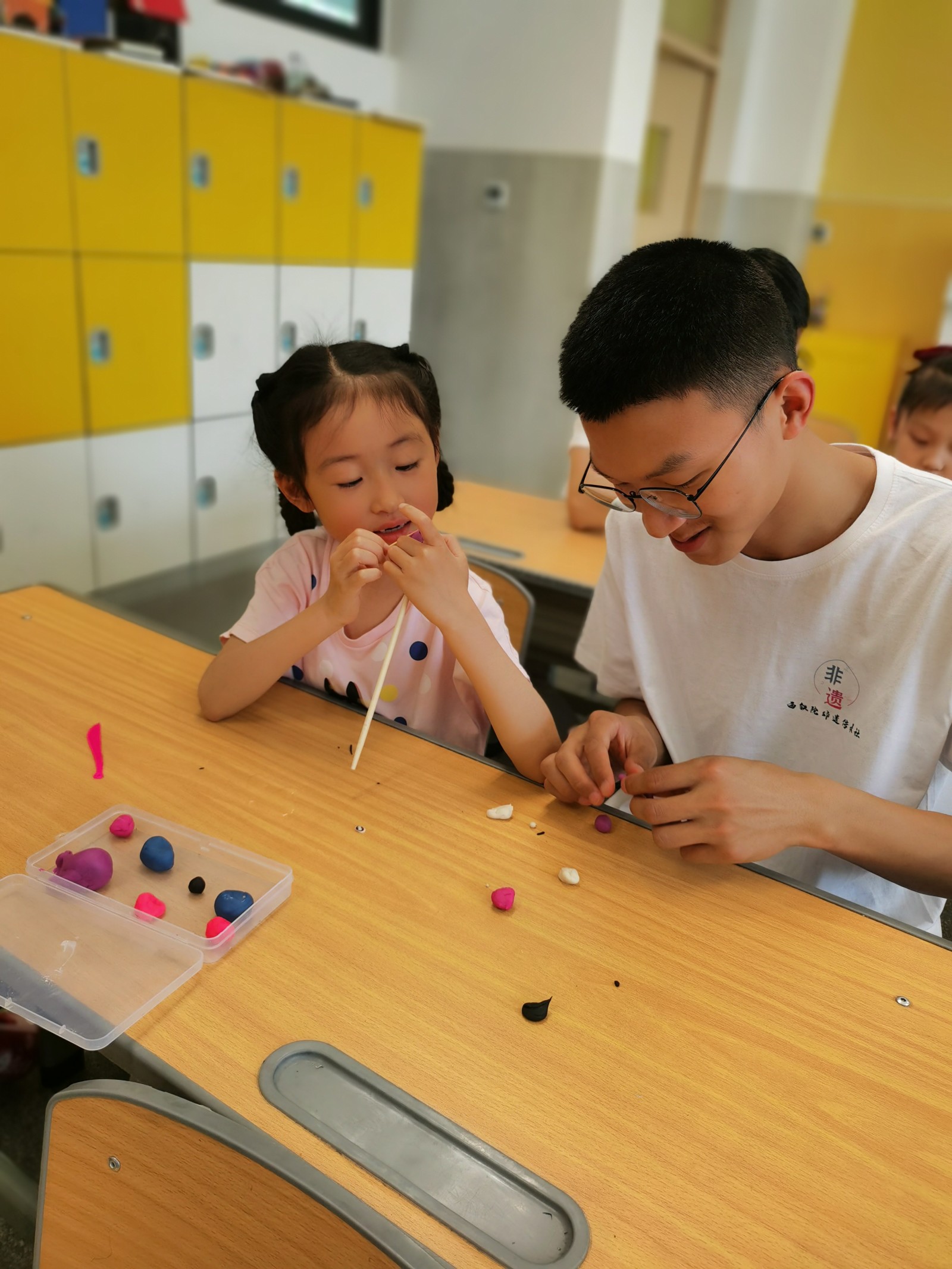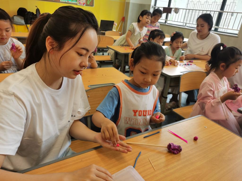 早上六点,非遗传承社学生代表搭乘第一班地铁从浐灞校区匆匆赶往高新第十七小学,参与西安市匠心非物质文化遗产研究院组织的校园非遗传承活动。第一次陪伴小学一年级学生,必赢官网大学生用自己独特的魅力,很快融入小学生的非遗特色课堂。