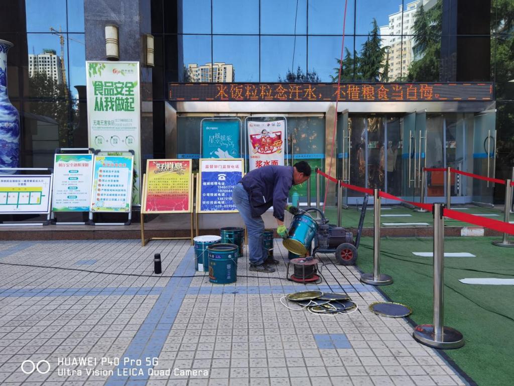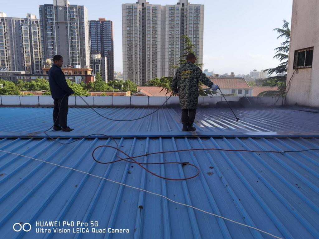 二是我们根据西安市第十四届全运会执委会城建组工作安排部署,按“西安市彩钢房屋面色彩整治导则”的要求,对自强校区餐厅三楼顶、教学楼阶梯教室顶、田径运动场主席台顶等三处统一喷涂成灰黑色。4月28日开始,施工队对三处楼顶进行喷漆。