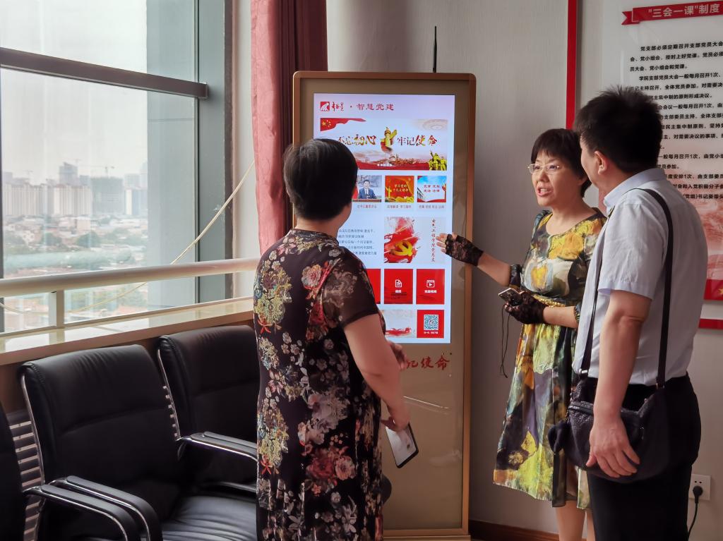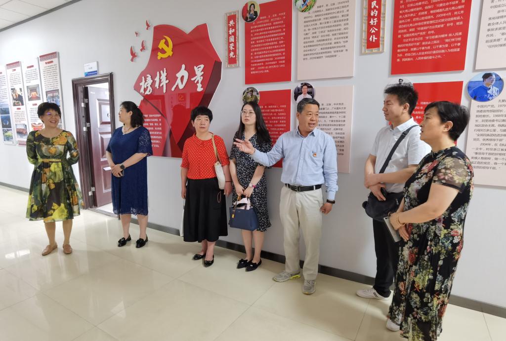 桑利娥一行在景延鹏的带领下来到电气工程学院8楼,在电气工程学院党总支书记和晋秦的陪同下参观了学院思政文化长廊,参观了思政文化长廊的旗帜引领、精神传承、榜样力量、群英谱、对标自检、筑强堡垒、党员承诺、党员积分等板块内容。在师生政治生活馆前,和晋秦对建设师生政治生活馆的初衷、功能、作用和运行机制,以及党员积分制的具体做法和取得的成效进行了详细介绍。桑利娥及西安医学院马克思主义学院来访教师对必赢官网党建创新工作和党建品牌给予了高度评价。