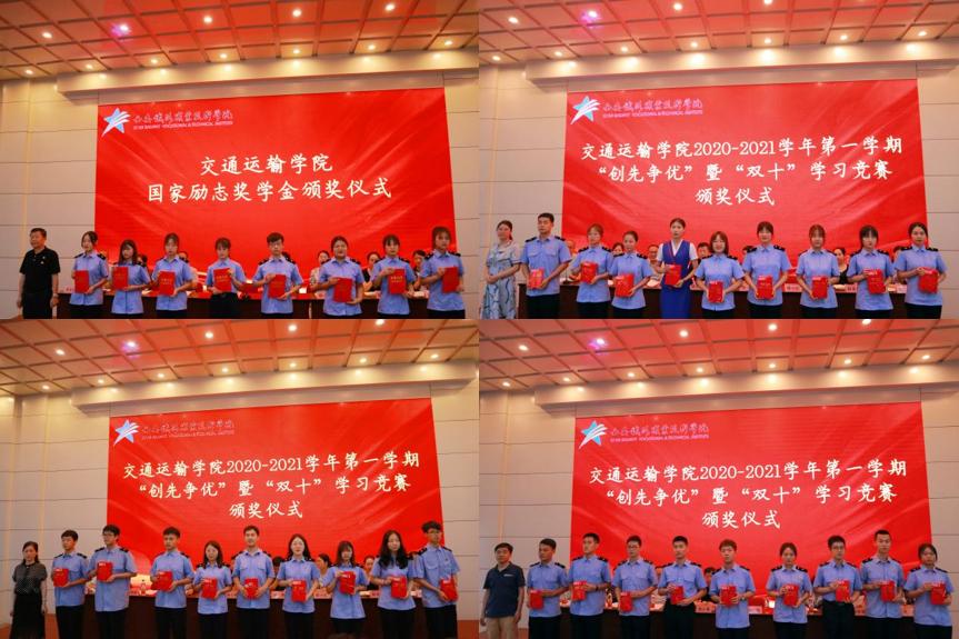 接下来,由交通运输学院领导为优秀学生颁奖。获奖的学生们迈着整齐的步伐,他们抬头挺胸,脸上布满了笑容,在台下同学们的祝福中,从院领导的手中接过属于自己的荣誉,此刻他们便是交运之星。国家励志奖学金获奖学生代表物流管理1901班杨佳昌同学表示,只有耕耘才有收获,成功之门是为敢于拼搏之人敞开的。在期末复习之际,他给同学们分享了自己的学习方法。我们应该弘扬交运精神,以实干笃定前行,书写自己的多彩人生。
