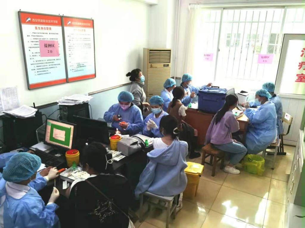 此前,为落实学院疫情防控工作统一部署,按照学院疫情防控办公室安排,龙首校区高度重视,积极行动,与属地疫情防控指挥部多次沟通,联系新城区自强街道办事处、西安市第六人民医院等单位,推进、落实了在校区内设点接种的工作。分别于今年3月31日、4月29日、5月31日三次为校区师生集中接种疫苗,使校区教职工接种率达到100%,学生接种率达到94%。