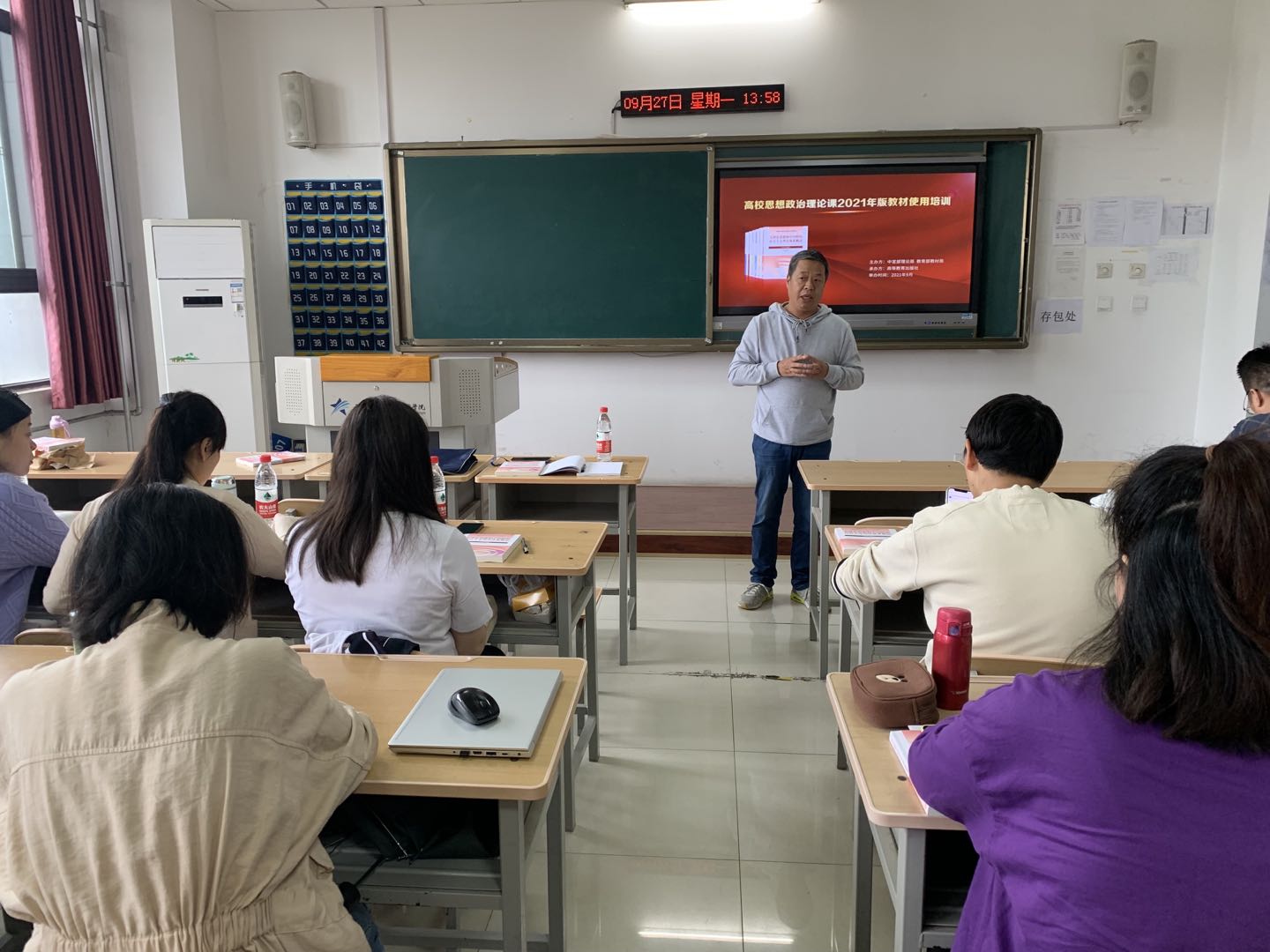 9月27日至29日,教育部召开高校思想政治理论课2021年版教材使用培训班,集中部署中央实施马克思主义理论研究和建设工程6门课程2021年版教材的使用工作并开展网络培训。 27日至28日下午,必赢官网在港务校区牵引209教室设置全国高校思想政治理论课2021版教材使用培训分会场,集中学习《毛泽东思想和中国特色社会主义理论体系概论》和《思想道德与法治》两门课程新教材使用技巧。马克思主义学院院长景延鹏、办公室主任赵建英以及马克思主义学院、土木工程学院全体专兼职思政课教师计40余人全程参加了本次培训会。