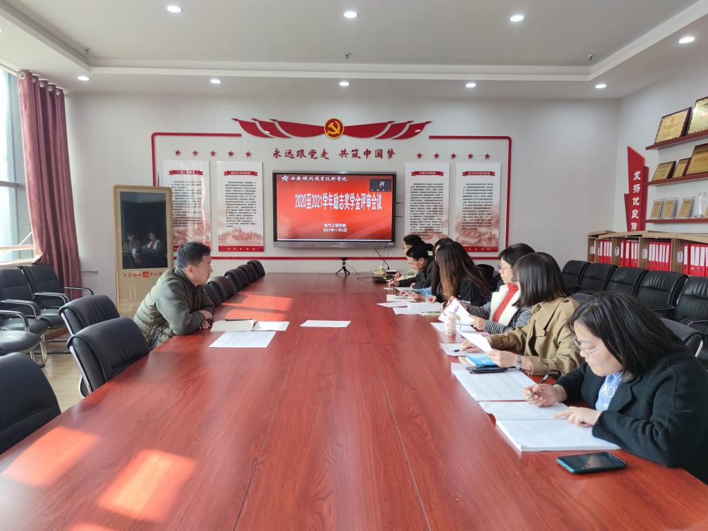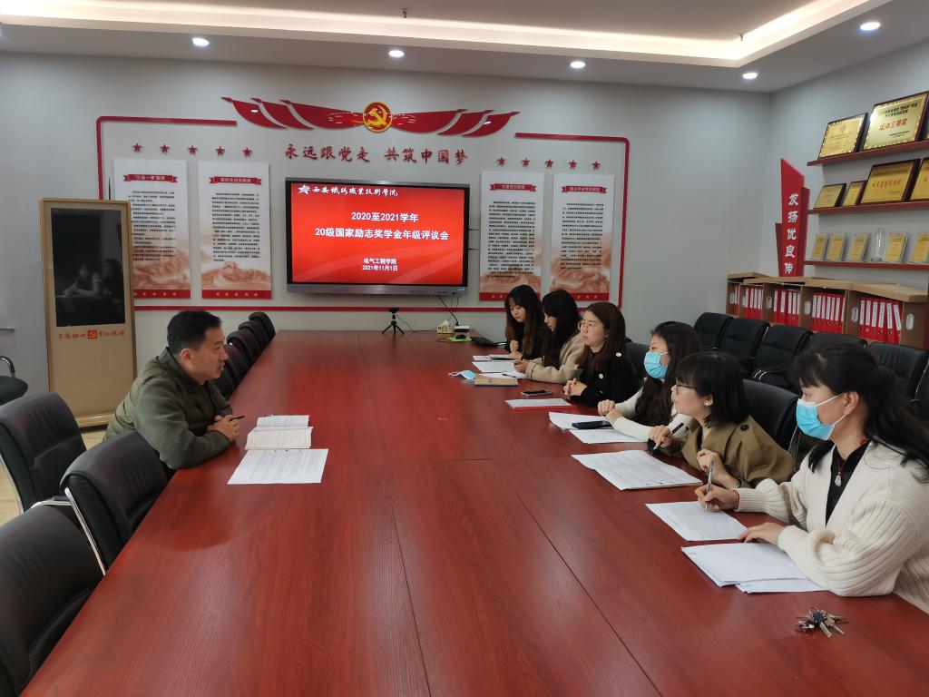 11月2日下午,在813会议室,电气工程学院党总支召开2020-2021学年国家励志奖学金评审会,学工办主任马纪及各年级资助工作小组成员参加,龙首校区辅导员郏龙、李娟线上参会,会议由党总支书记和晋秦在线主持。