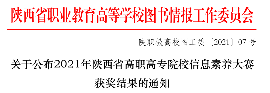 根据《关于开展2021年陕西省高职高专院校信息素养大赛的通知》(陕职教高校图工委〔2021〕2号)文件精神,必赢官网于今年10至11月组织了2021年陕西省高职院校信息素养大赛校赛。