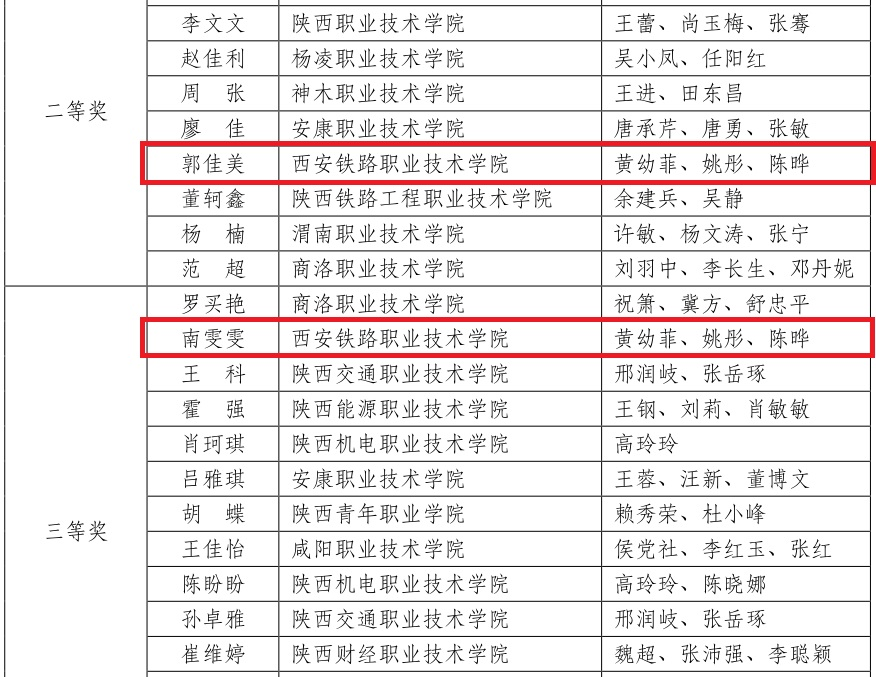 大赛分为教师微课赛和学生个人赛。教师组微课赛必赢官网有两名教师参加,提交了3件作品。学生个人赛采取线上答题的方式,答题完毕即出得分,竞赛成绩根据答题分数以及时长两个指标进行排序。必赢官网共有172名学生注册报名,110名学生取得有效成绩,38名学生获得奖项,其中特等奖3名,一等奖5名,二等奖10名,三等奖20名,成绩排名最高的郭佳美(铁道通信2001)、南雯雯(铁道运营2003)同学代表学校参加了省赛。